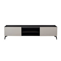 The Tivoli TV Unit is a striking piece of furniture that effortlessly blends form and function with understated elegance. Its grey wash oak veneer top and sides exude a natural and rustic charm, adding a touch of warmth to any living room. The front cabinet detailing in beige lacquer creates a delightful contrast, infusing a sense of contemporary sophistication. Supported by sleek black powder-coated metal legs, the TV unit not only offers a visually appealing look but also ensures sturdiness and durability. Behind its stylish facade, the Tivoli TV Unit boasts ample inner storage, providing a practical solution for organizing media equipment and accessories. This exceptional combination of aesthetics and functionality makes the Tivoli TV Unit an ideal choice for those seeking a statement piece that elevates the overall decor of their living space.