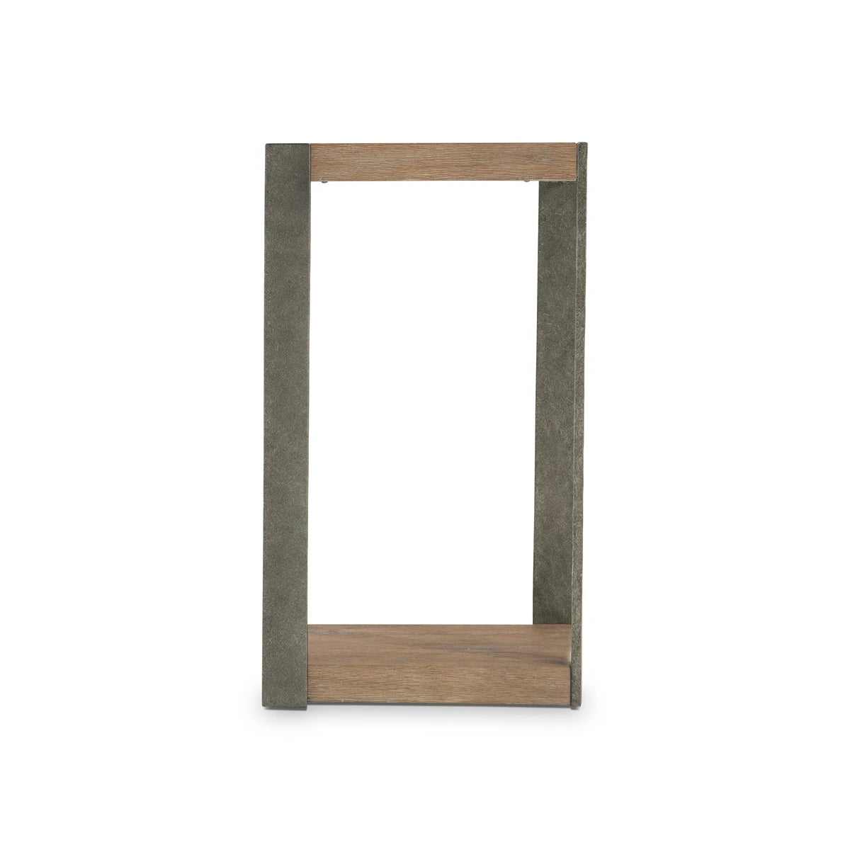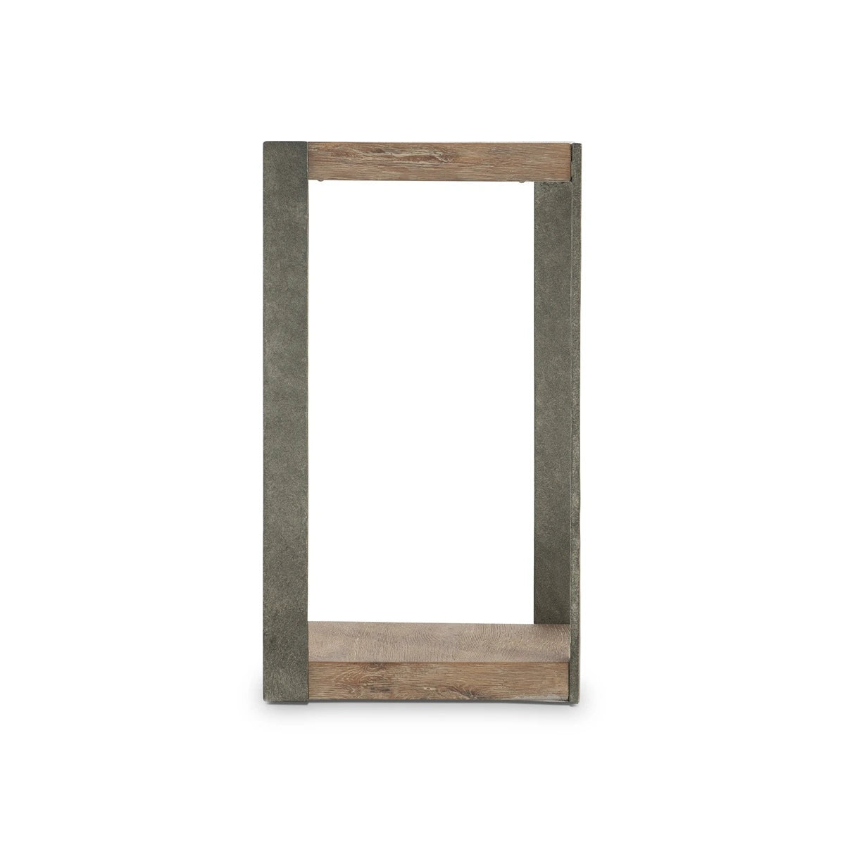 The Tribeca accent table melds modern design with rustic styling for a stunning look. Textured steel legs rise from the wood base to embrace each corner of the wood top. The wire-brushed wood is finished in Aurum.