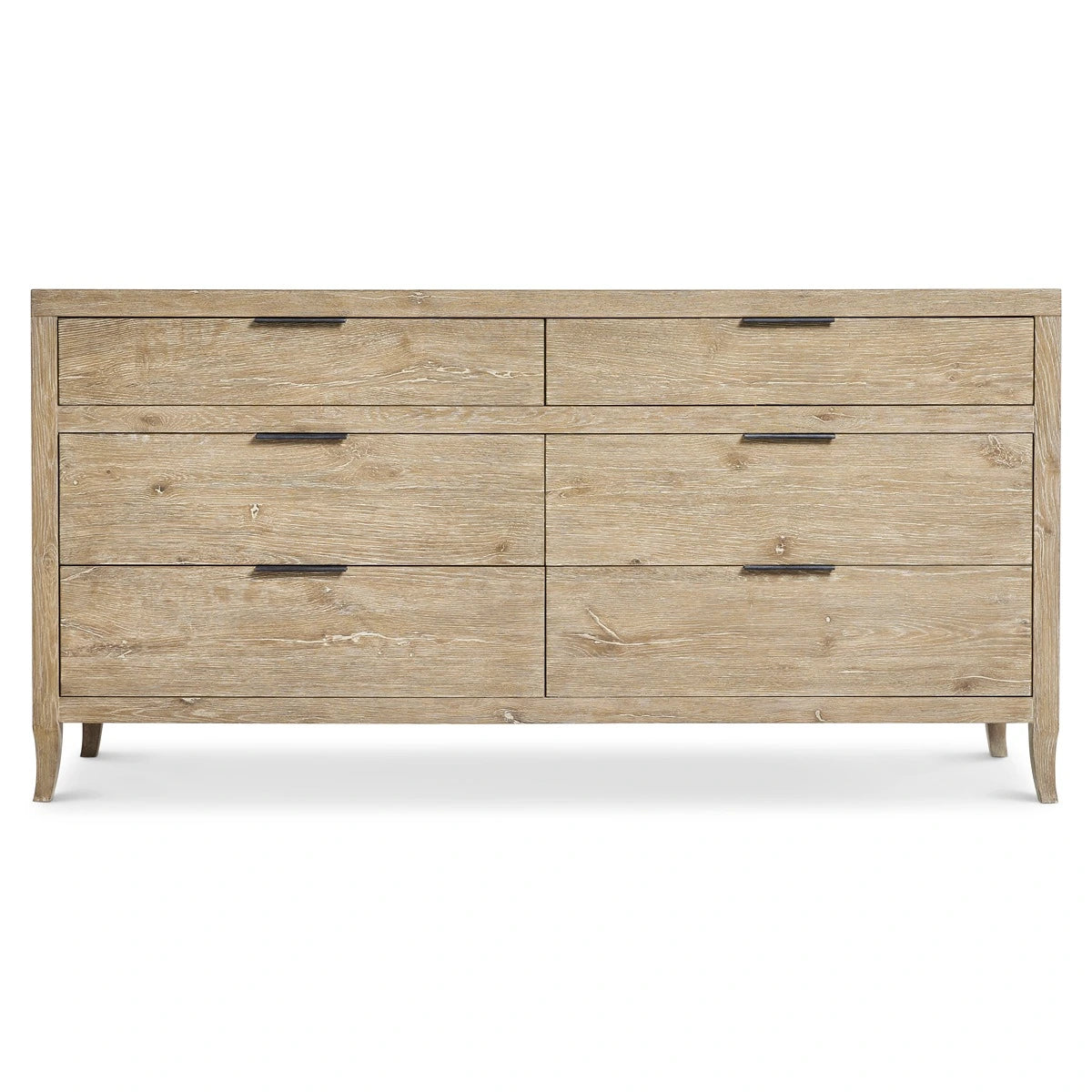 The Tribeca dresser pares traditional design to simpler lines and stunning rustic style. The details of natural wood are highlighted by the Aurum finish. Each of the six drawers has a textured metal pull tab in Barlow finish.