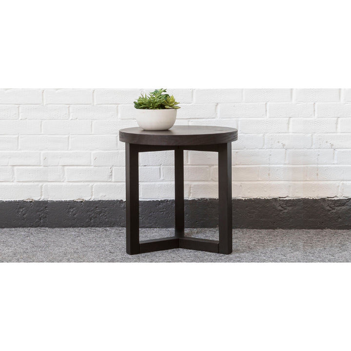 The three-legged cross-frame structure is not only a highly practical way of maximising its suitability for use in various locations but also works to soften the sharpness of its lines. Circular and generously proportioned, with a height and diameter of 50cm, this side table will be a highly desirable addition to any room.