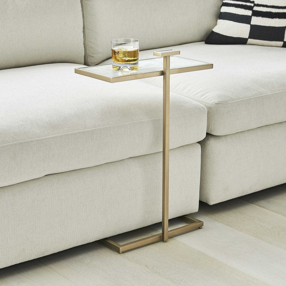 The Jewel Pull Up Accent Table is a combination of beauty and function. The quartz crystal top and handle inset are framed in a rich brass finish. This table is ideal to pull up to your favorite seat and enjoy a beverage.