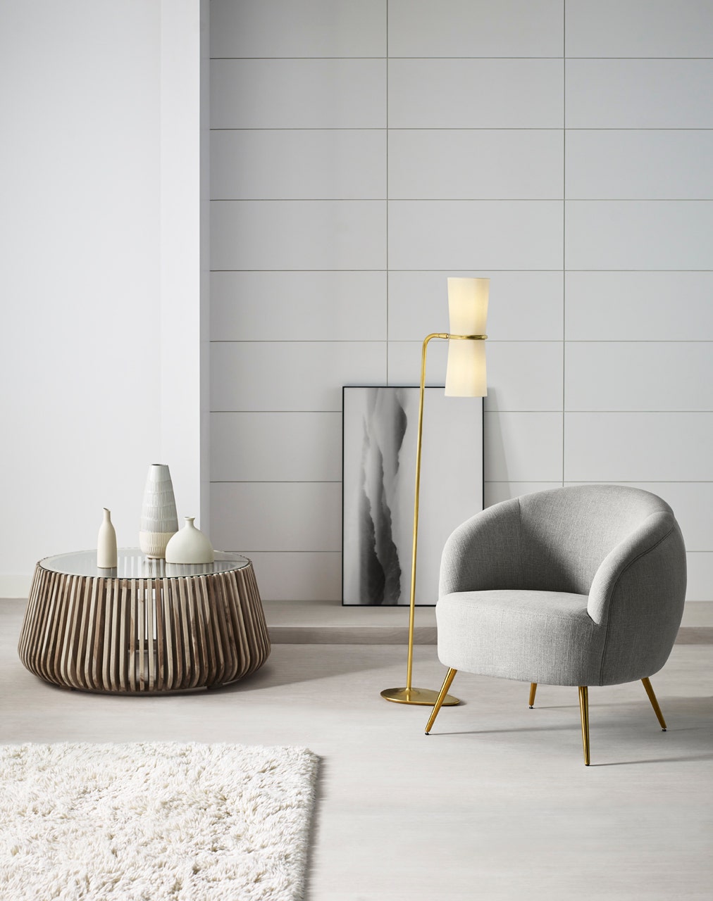 Clarkson Floor Lamp - Antique Brass with Linen Shades