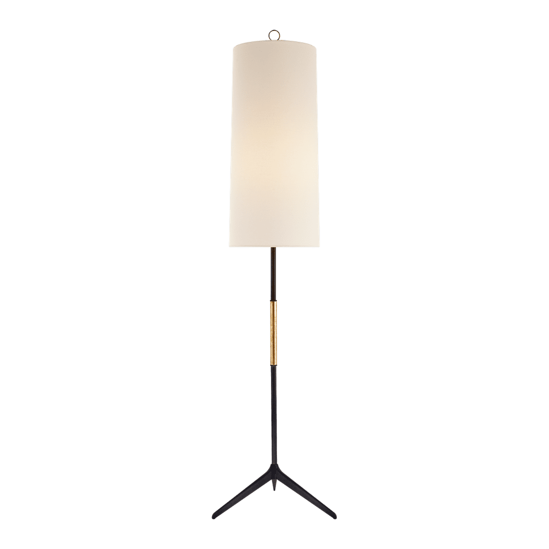 Frankfort Floor Lamp - Aged Iron with Gilded Accents & Linen Shade