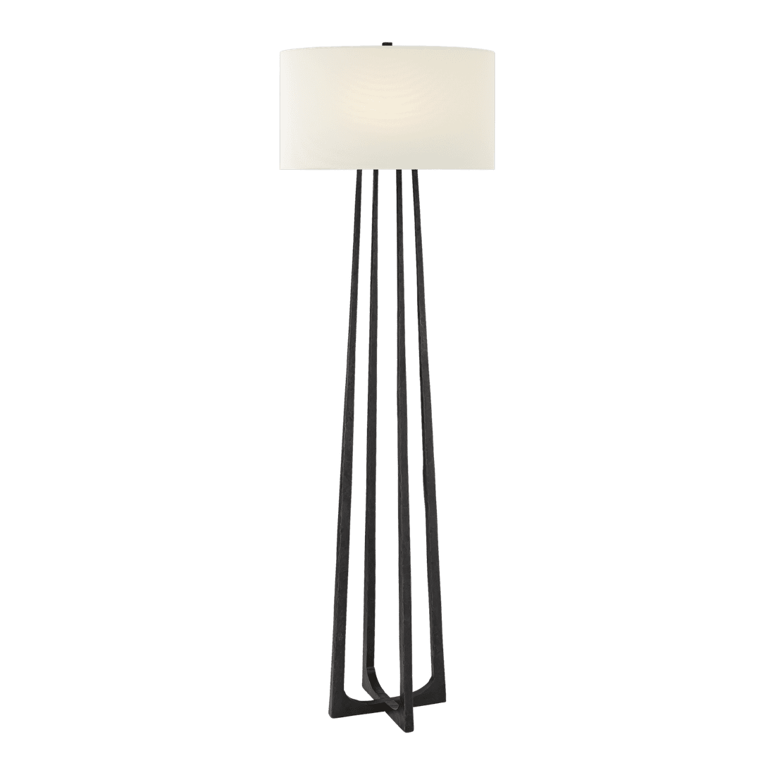 Visual Comfort and Co. Scala Large Hand-Forged Floor Lamp in Aged Iron with Linen Shade. Visual Comfort & Co. is a renowned designer and manufacturer of premium lighting, celebrated for its timeless craftsmanship and collaborations with world-class designers.