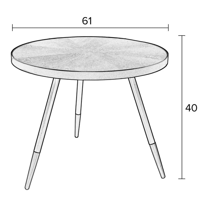 The Daven coffee table has a diameter of 61cm and stands at a height of 40cm, making it the perfect size for any living space. This versatile piece of furniture can be used as a centerpiece for your living room or as a practical surface for your favorite books, magazines or decorative items. The sturdy legs provide stability and durability, ensuring that the coffee table can be enjoyed for years to come.