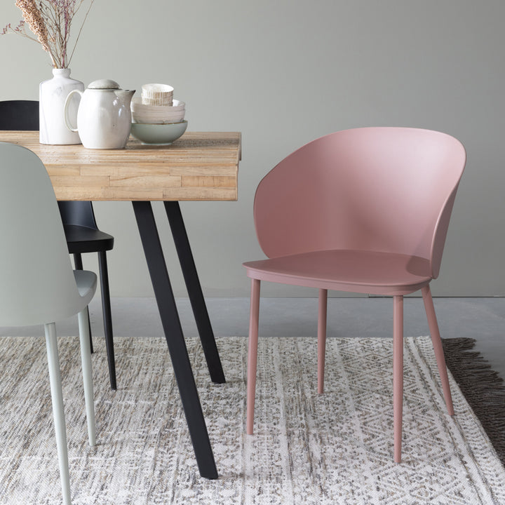 Materials: Polypropylene plastic shell. Powder-coated steel legs