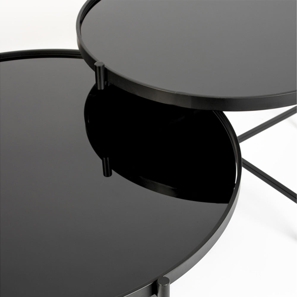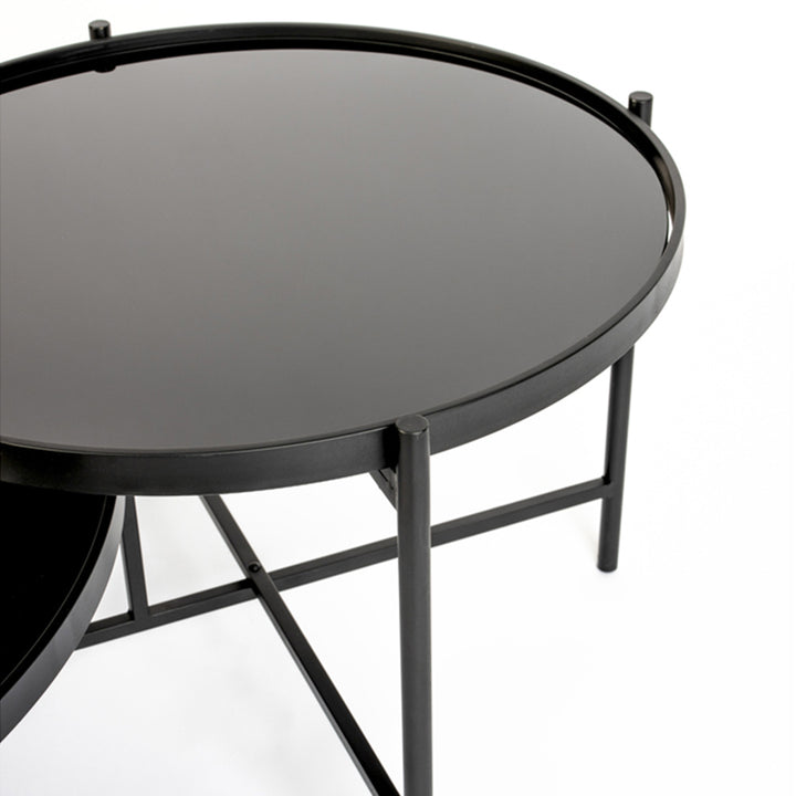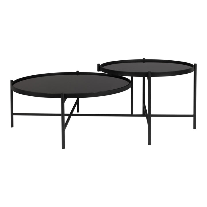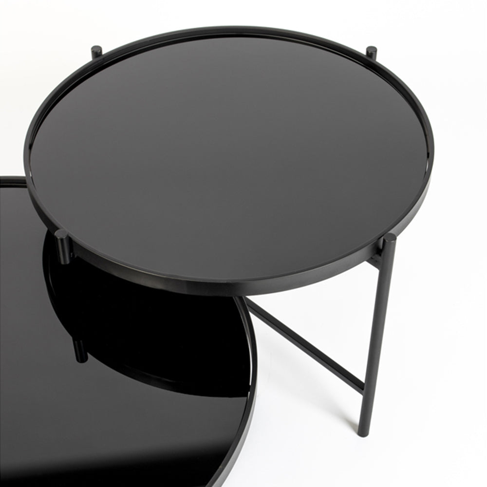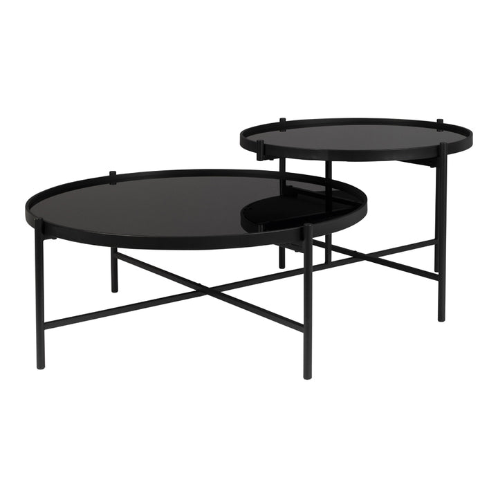 Sleek, stylish and versatile, this Olivia's Nordic Living Collection Logan coffee table in black has two round table tops of different sizes to give you the ultimate in functional yet trendy design. The black powder-coated iron tops and legs are robust and practical, with this unusual table adding chic sophistication to whichever room you choose to use it in.