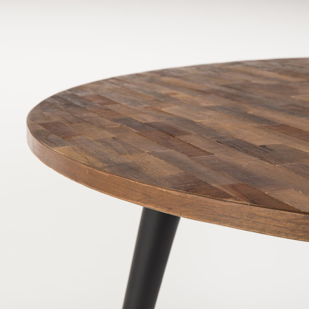 Materials: Recycled teak tabletop with teak veneered border, NC lacquered. Steel legs