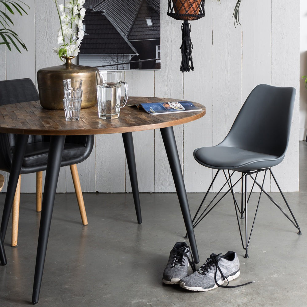This wood on metal style of furniture is of course very popular but also has the advantage of already being a classic, rather than a fast furniture fashion item. With a circular table top set on simple black legs, and with its sensible dimensions, Joran is suitable for use in a wide range of spaces. Sustainability by design! Dimensions: H: 76 X L: 110cm.