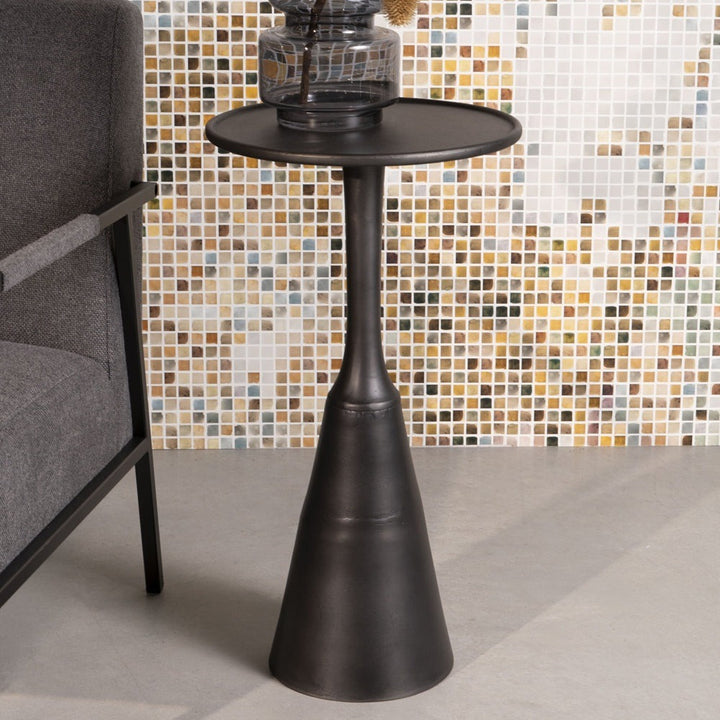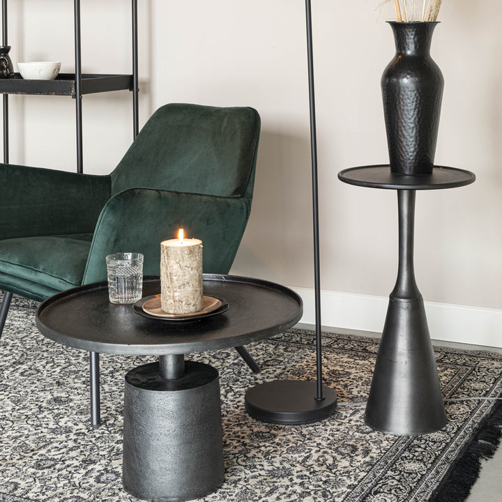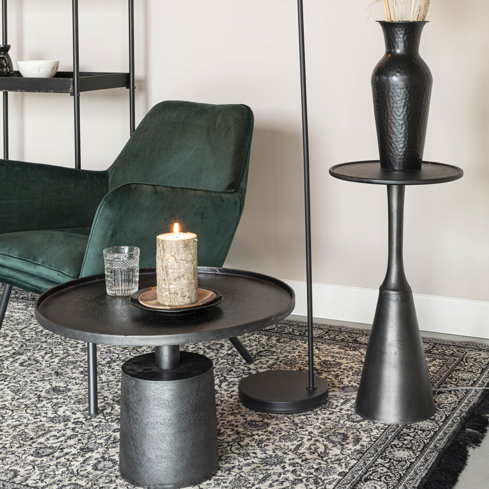This stylish Nilsen side table in antique black comes from Olivia's Nordic Living Collection. Featuring a cool aluminium table top and base with a black finish, this piece can be staged in an open-plan space alongside your other contemporary décor and furnishings.