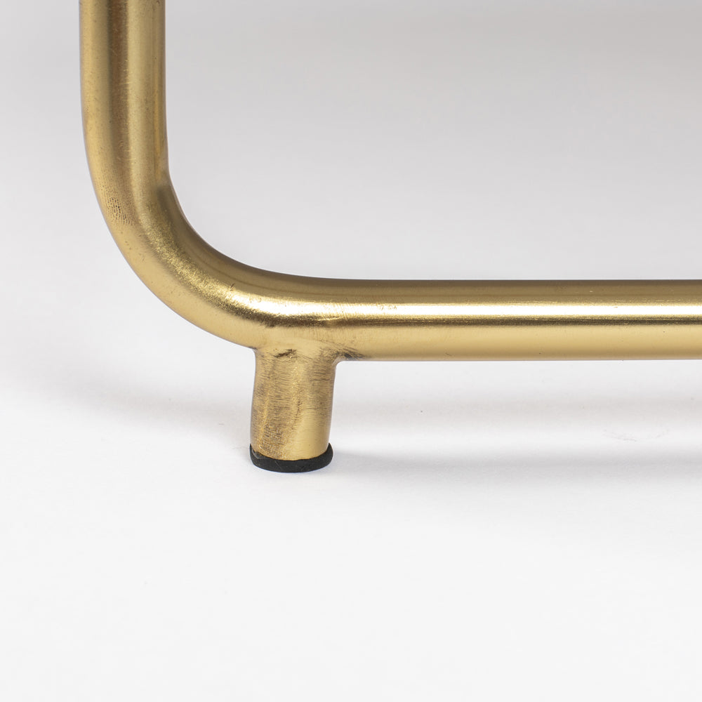 Its art-deco inspired, rounded silhouette features a smooth enamel top and is supported by a sturdy metal frame in a gold finish. Offering an impressive styling accent, decorate your space with a table lamp or succulent.