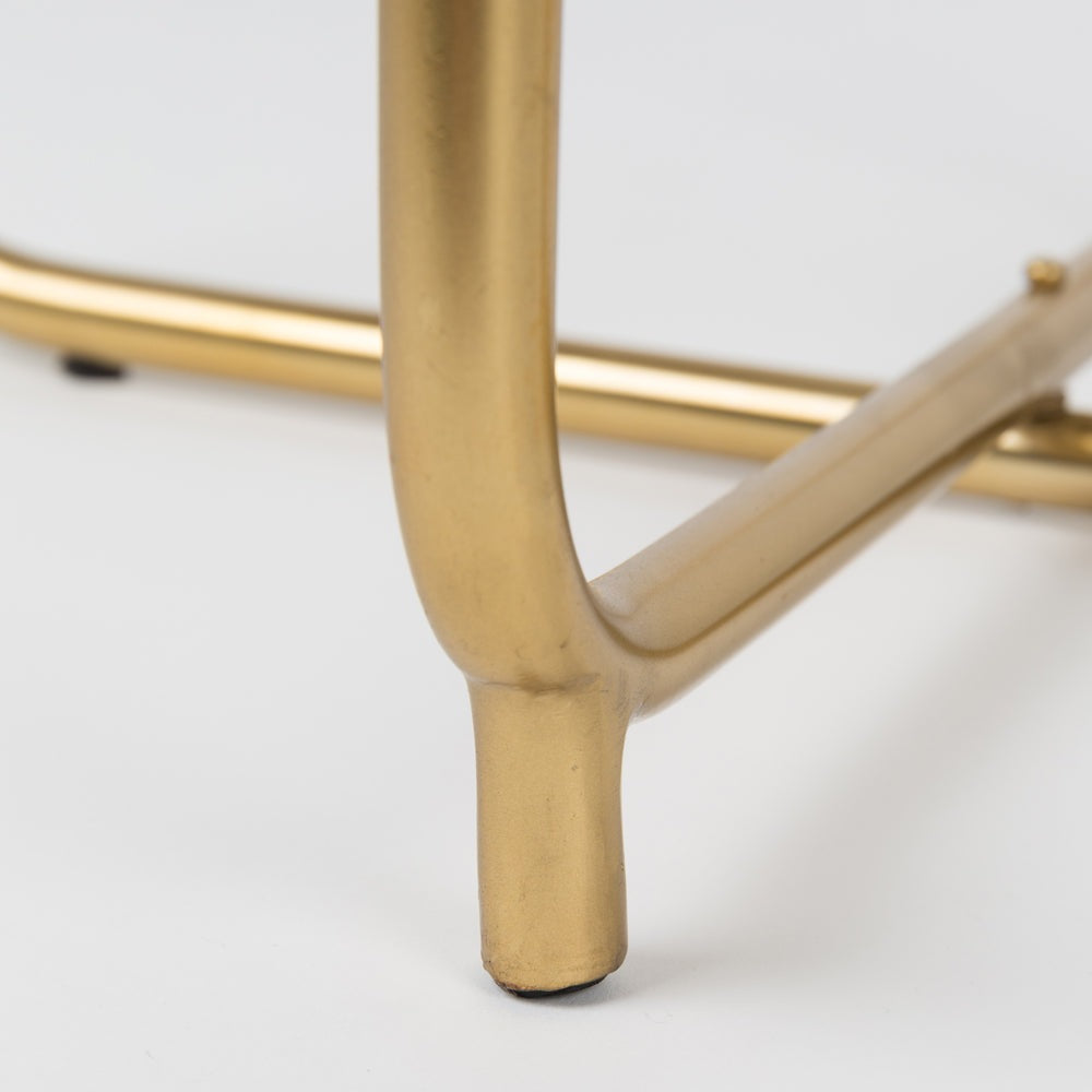Its art-deco inspired, rounded silhouette features a smooth enamel top and is supported by a sturdy metal frame in a gold finish. Offering an impressive styling accent, decorate your space with a table lamp or succulent.