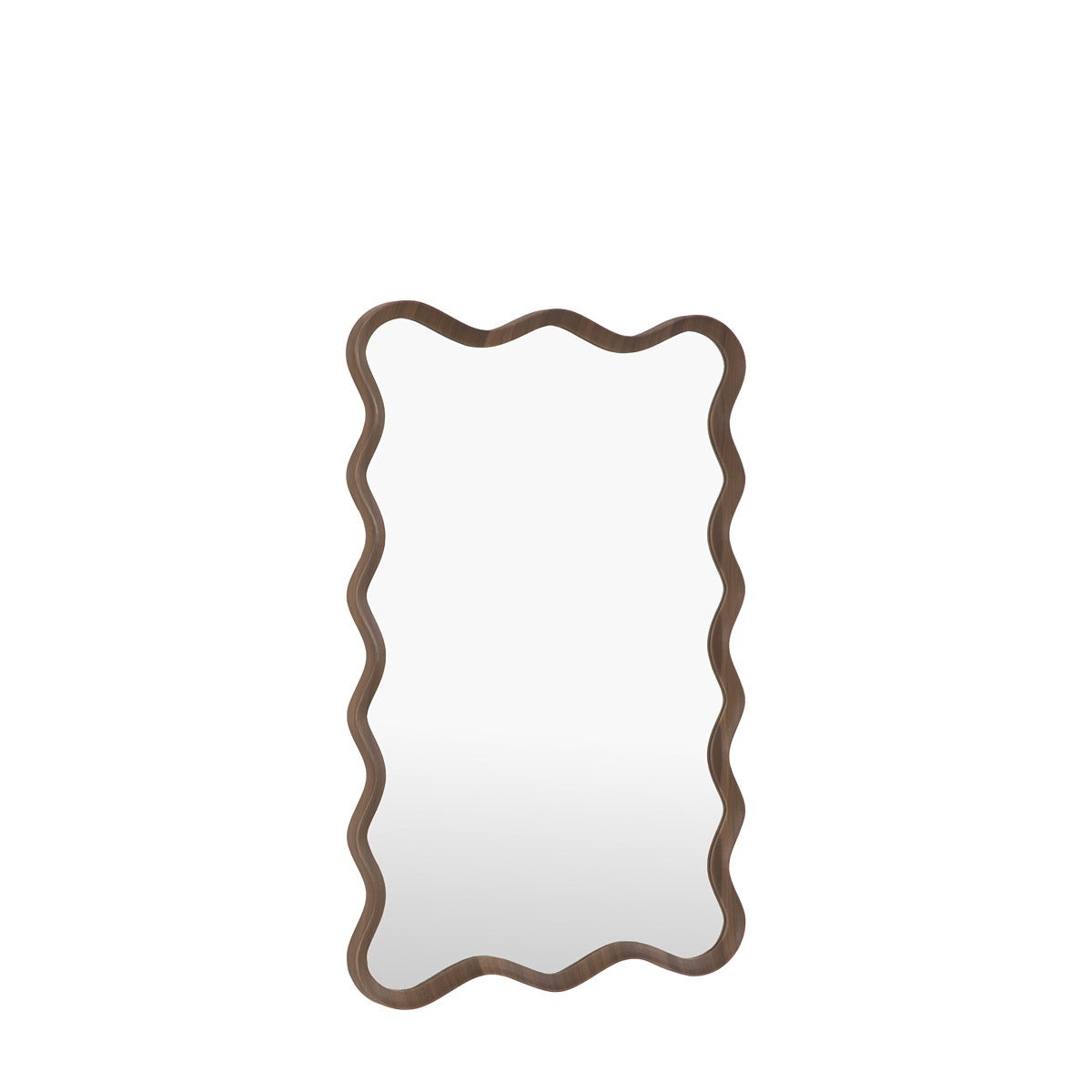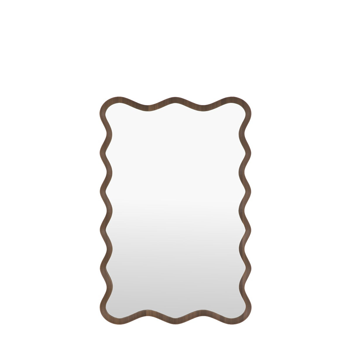 Perfect for adding a playful, contemporary edge to a modern interior, this mirror's wavy silhouette feels fresh, expressive and full of movement. Finished in a walnut wood, the natural tones and grains soften the bold shape, balancing warmth and modern design. Distinctive and exciting, this statement mirror adds charm, energy and character to a space.