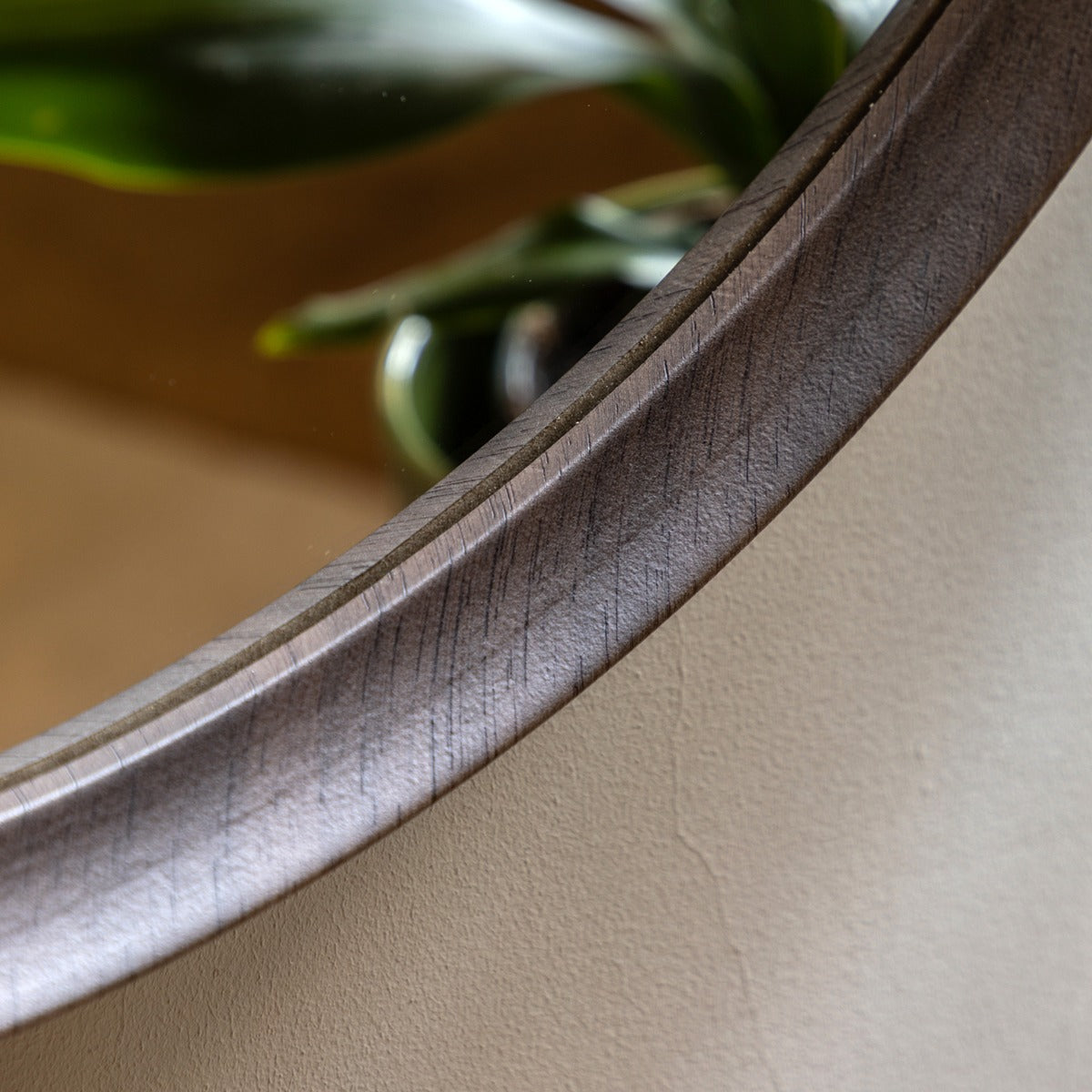 This mirror effortlessly combines modern simplicity with rich natural warmth. Featuring a clean, round silhouette and a smooth frame finished in dark walnut, the design offers a timeless yet contemporary look. Refined and versatile, the mirror adds depth and understated elegance to a wide range of interiors.