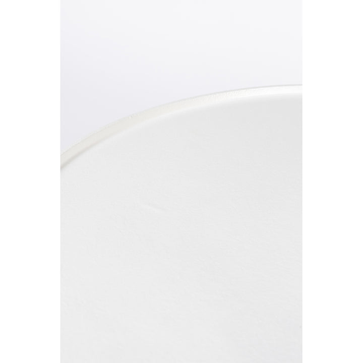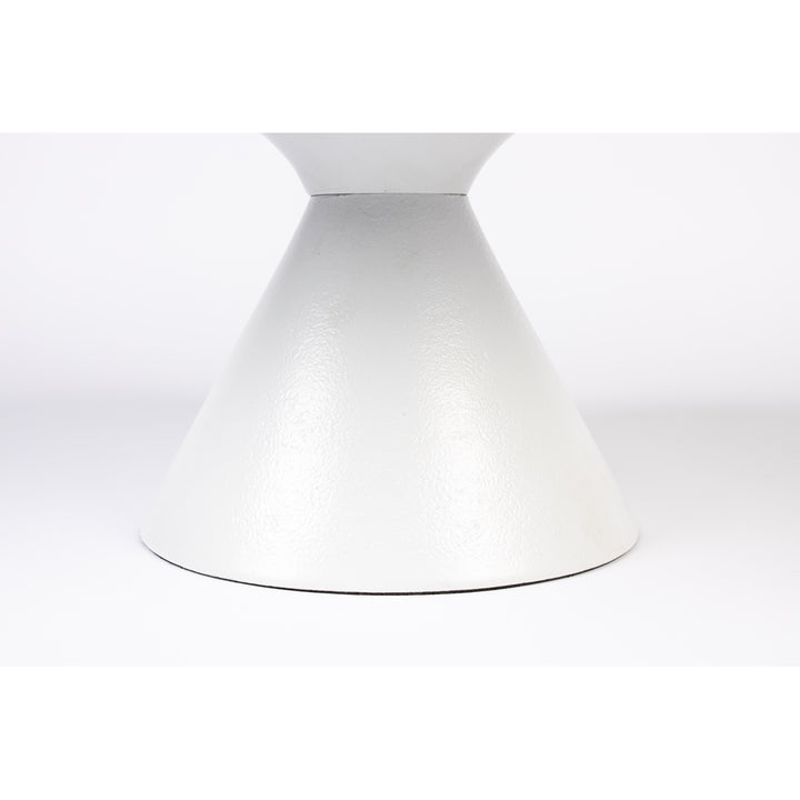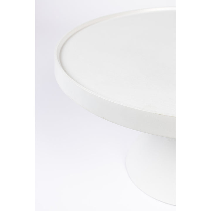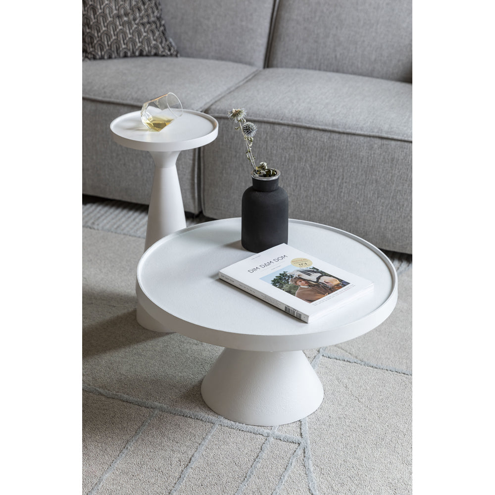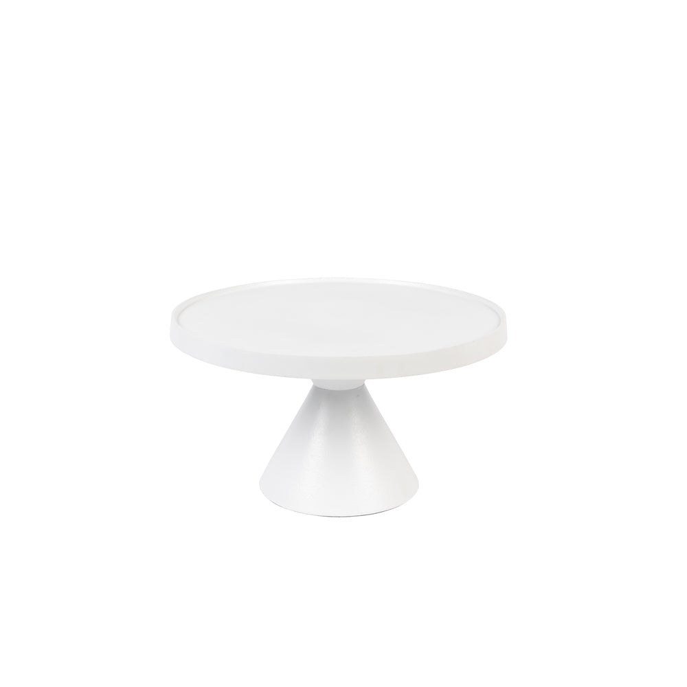 This gorgeous coffee table is modern and stylish. Featuring a coating of white powder aluminium that is exceptionally easy to keep clean, this lovely table stands out by its stark white colour and unique design. It has a solid cyclical base that makes it look dependable, and the table top itself is circular in design.